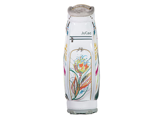 Das edle JuCad Bag Luxury ist ein echter Hingucker auf den Fairways. Einmalig und unverkennbar, für Golfer die das Extravagante suchen, liegt das Hauptaugenmerk auf dem beeindruckenden Design mit sehr aufwendigen und exklusiven Stickereien. Die holografische Spiegeloptik setzt das Bag dreidimensional in Szene und wird damit zum echten Eyecatcher. Mit 9 inch und einer klassischen Vierfach-Einteilung bietet es Platz für alles, was Sie auf der Golfrunde benötigen: Das Extrafach für den JuCad Powerpack und viele kleine und große Außentaschen sorgen für Stauraum und ermöglichen einen schnellen Zugriff auf Ihre Golfausrüstung. Das Bag ist leicht abwaschbar und die Schlägerhaube sowie der Tragegurt sorgen für weiteren Golfkomfort. Das JuCad Bag Luxury wird mit Neopren-Flaschenhalter geliefert.
