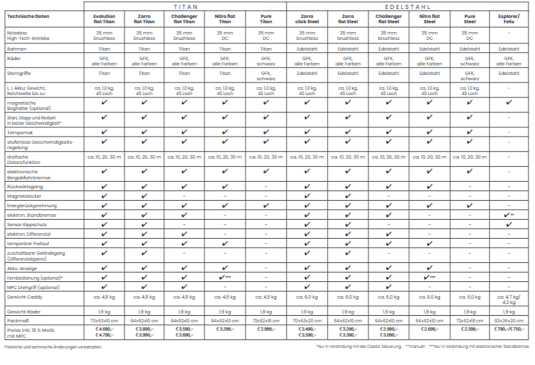 Auch das Packmaß ist ein entscheidendes Kriterium. Je flacher ein Caddy verpackt werden kann, desto besser. Der neue „Evolution Titan“ ist der Golfcaddy in der Luxusklasse, der verpackt – inklusive Räder – in der Tragetasche nur 10 cm Höhe misst.